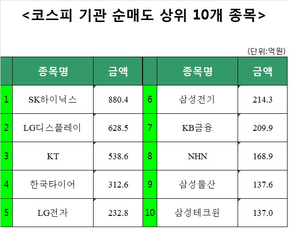 [주간 코스피 기관 순매도 상위 10개 종목]