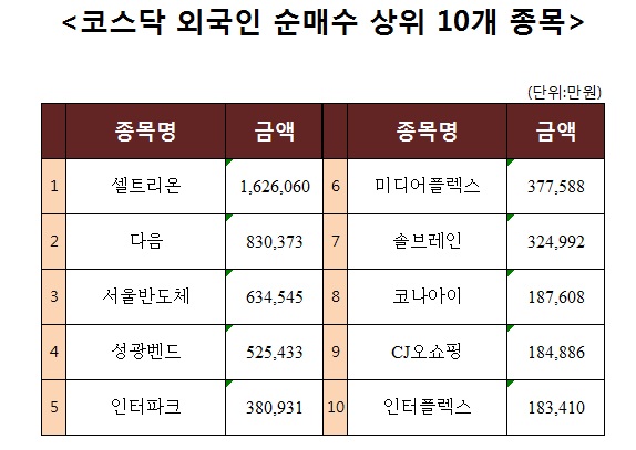 [주간 코스닥 외국인 순매수 상위 10개 종목]