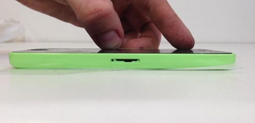 유출된 측면 사진은 알루미늄 재질을 사용한 아이폰5와 달리 플라스틱을 사용한 것과 심(SIM) 카드 슬롯이 중앙에 위치한 것을 보여주고 있다.