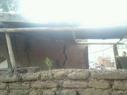 ▲중국 간쑤성 딩시시에서 규모 6.6의 지진이 발생해 최소 22명이 사망했다고 22일(현지시간) 관영 신화통신이 보도했다. 딩시시의 한 가옥 벽면이 지진으로 금이 갔다. 딩시/신화뉴시스