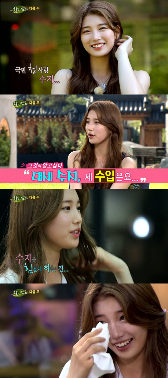 걸그룹 미쓰에이 멤버 수지가 SBS ‘힐링캠프’에서 눈물을 흘렸다.