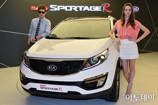 기아자동차가 23일 오전 서울 강남구 압구정동 기아자동차 국내영업본부에서 ‘더 뉴 스포티지 R’을 선보이고 있다.