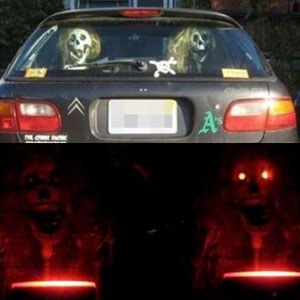 사진 속에는 해골이 뒤 차를 바라보며 앉아있는 듯한 장식을 붙인 자동차가 찍혀 있다. 특히 밤에는 붉은 조명이 추가돼 더욱 공포스러운 분위기를 자아낸다.