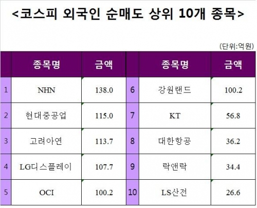 [코스피 외국인 순매도 상위 10개 종목]