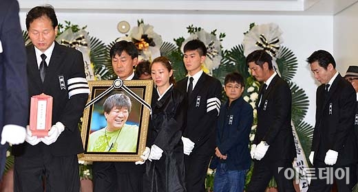 故 김종학 PD 영정이 25일 오전 서울 송파구 풍납동 서울아산병원 장례식장 빈소에서 영결식장으로 이동하고 있다. 방인권 기자 bink7119@