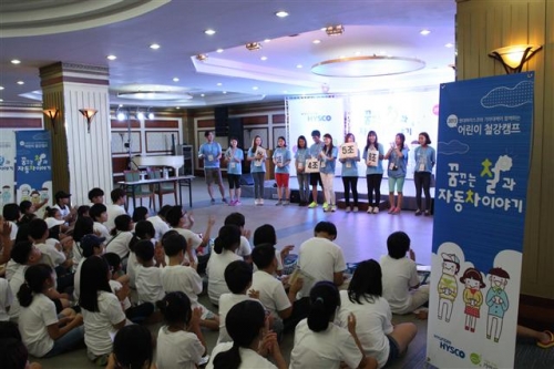 ▲현대하이스코가 기아대책과 함께 지난 24일부터 오는 26일까지 3일간 서울, 당진, 순천 등 사업장 소재지역의 저소득층 어린이 120여 명을 대상으로 철강캠프를 개최하고 하고 있다.