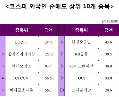 [코스피 외국인 순매도 상위 10개 종목]