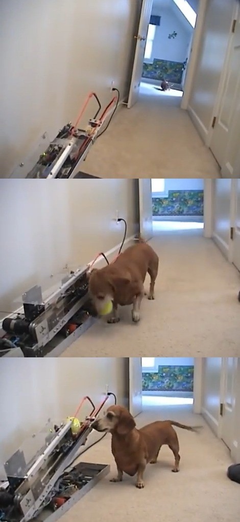 공개된 '공대생의 애견사랑' 영상 속에는 자동으로 공을 던지는 기계와 놀고 있는 강아지의 모습이 담겨 있다. 이 장치가 테니스공을 발사하면 강아지가 공을 물어와 다시 장착시키기를 반복한다. 매일 강아지와 공던지기 놀이를 해줄 수 없는 강아지에 대한 주인의 배려가 느껴진다.