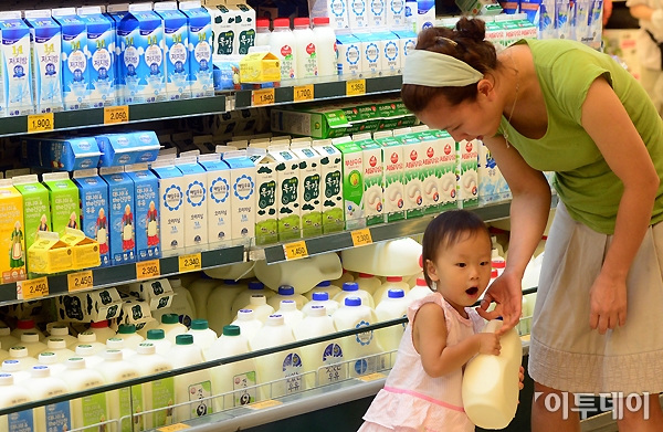 매일유업이 다음달 8일부터 우유값을 10.6% 인상한다. 이에 따라 대형 할인점을 기준으로 1L 우유의 가격은 2350원에서 250원 오른 2600원으로 인상된다. 매일유업의 가격 인상을 시작으로 서울우유, 남양유업 역시 가격을 인상할 예정이다. 29일 오후 서울의 한 대형마트를 찾은 시민들이 우유를 고르고 있다. 노진환 기자 myfixer@
