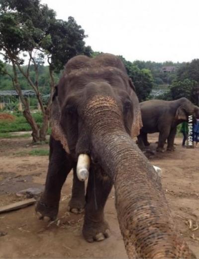 공개된 '코끼리 전신 셀카' 사진에는 코끼리 한 마리가 카메라를 향해 긴 코를 들이밀고 있다.