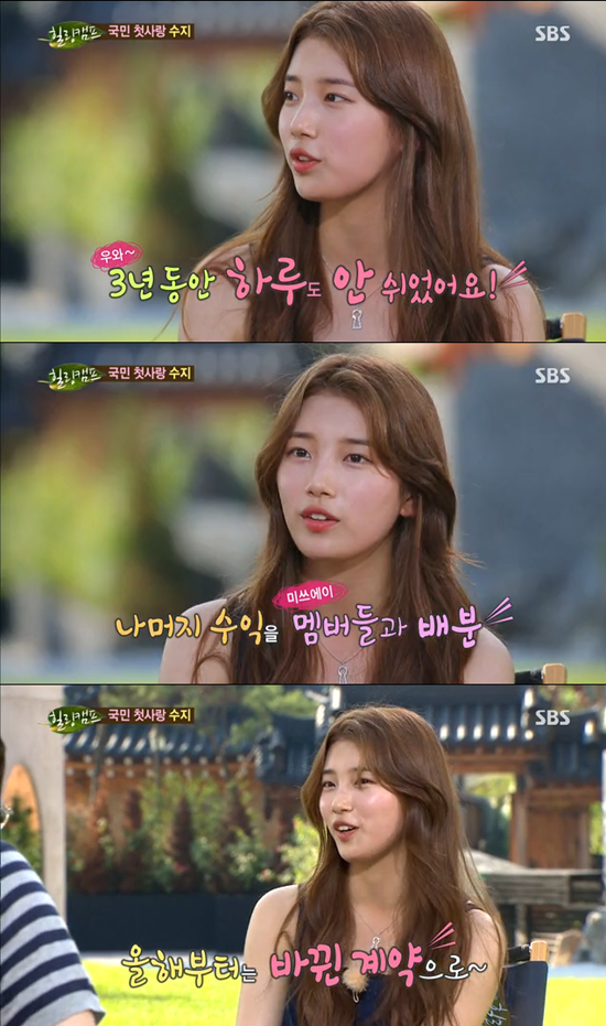 미쓰에이 멤버 겸 배우 수지가 수입에 대해 입을 열며 지난 3년간 쉼 없이 일해온 사실을 밝혔다.