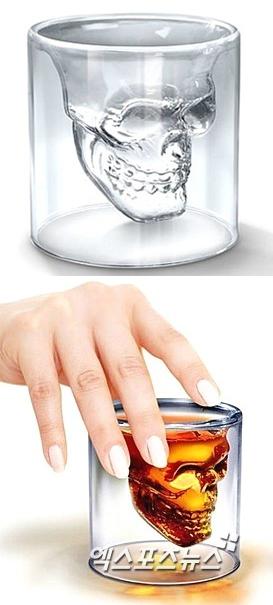 사진 속에는 해골 모양을 본떠 만든 양주잔의 모습이 고스란히 담겨 있다.