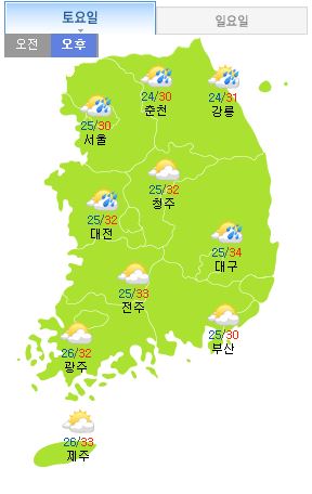 특히 기상청은 주말 날씨 예보에 “토요일에는 새벽부터 낮 사이에 국지적으로 강한 비가 내리는 곳도 있을 수 있다”고 덧붙였다.