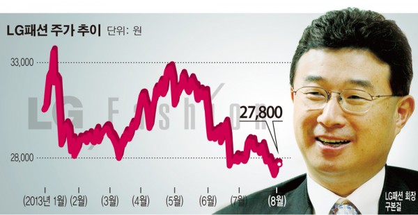 실제 LG패션은 실적 악화속에 올 들어 꾸준히 주가 조정기를 거치고 있다. 지난 6월19일 3만원 선 붕괴 이후 연일 52주 최저가를 경신하고 있는 상황이다.