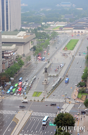 본격적인 휴가가 시작돼 피서를 떠난 시민들이 늘어나 도심은 한가한 모습을 보이고 있다. 4일 오전 서울 중구 프레스센터에서 바라본 광화문 네거리의 모습이 평소 주말보다 여유롭다. 노진환 기자 myfixer@