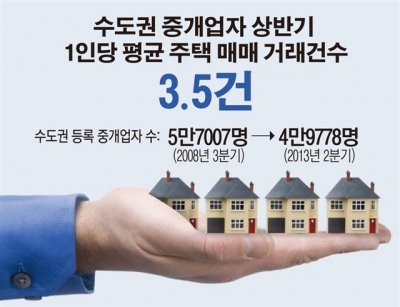 올해 상반기 수도권 중개업자 1인당 평균 주택 매매 거래 건수는 3.5건에 불과한 것으로 나타났다. 1인당 두 달에 한 건 정도 거래한 셈이다.