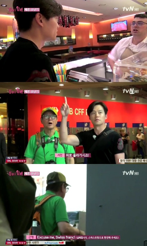 하지만 이 때문에 이서진의 부담은 더 커졌다. 자신을 쫓아오느라 힘드실까봐 걱정이 커졌던 것. 결국 이서진은 박근형을 제작진에게 맡기고 프랑스 화폐를 스위스 화폐로 바꾸기 위해 애썼다.