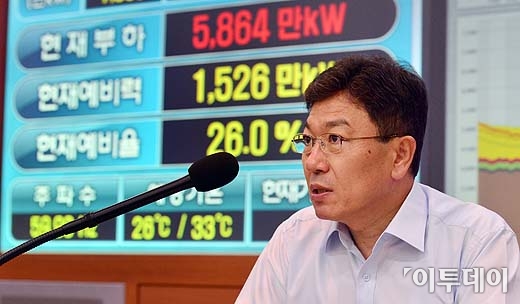 윤상직 산업통상자원부 장관이 11일 오후 서울 강남구 삼성동 한국전력 회의실에서 열린 ‘전력수급위기 대책회의’에 참석해 인사말을 하고 있다. 방인권 기자 bink7119@