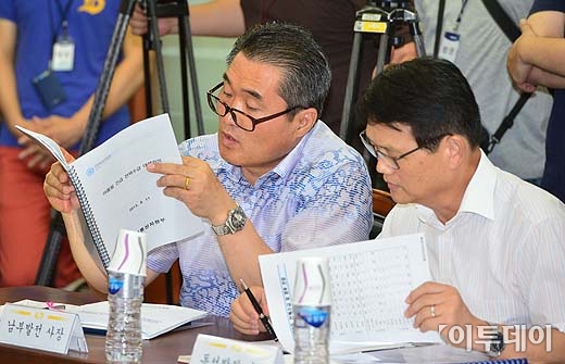 11일 서울 강남구 삼성동 한국전력 회의실에서 열린 ‘전력수급위기 대책회의’에서 참석자들이 회의자료를 살펴보고 있다. 방인권 기자 bink7119@