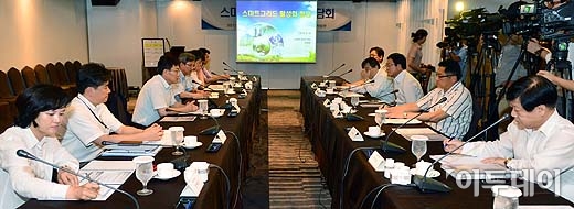 윤상직 산업통상자원부 장관이 12일 오후 서울 초구 반포동 팔래스호텔에서 열린 ‘스마트그리드 정책 간담회’에 참석해 인사말을 하고 있다. 방인권 기자‌bink7119@