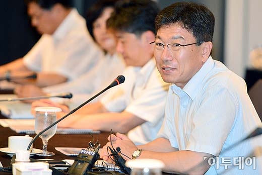 윤상직 산업통상자원부 장관이 12일 오후 서울 초구 반포동 팔래스호텔에서 열린 ‘스마트그리드 정책 간담회’에 참석해 인사말을 하고 있다. 방인권 기자‌ bink7119@