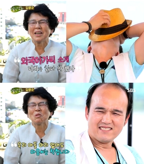 김광규 어머니는 “외국 아가씨라도 소개해주려 했는데 싫다고 하지 않았나”라며 “싫다고 하지 말고 외국 아가씨라도 마음만 있다 하면 알아보겠다. 제발 장가가도록 해봐라. 엄마 죽고 나면 할래?”라고 말해 아들의 결혼을 간절히 원했다.