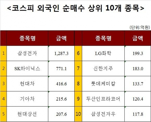 [코스피 외국인 순매수 상위 10개 종목]