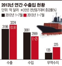 올해 7월까지 수출은 지난해 같은 기간에 비해 0.9% 증가한 3224억달러를 기록했고 수입은 2%감소한 2999억 달러로 집계됐다.