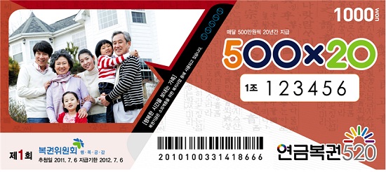 한국연합복권은 연금복권520(이하 연금복권) 111회차 추첨 결과, 1등 당첨번호는 '2조 368304번'과 '3조 905291번'이 결정됐다고 지난 14일 밝혔다. 1등 당첨자는 20년간 매달 500만원씩 12억원을 받게 된다.