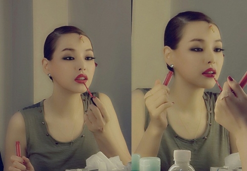 사진 속 이하늬는 붉은 립스틱을 바르고 있는 모습이다. 이하늬는 머리카락 한 올 없는 올백 헤어스타일에, 새하얀 얼굴, 짙은 눈화장, 붉은 입술로 팜므파탈을 연출했다.