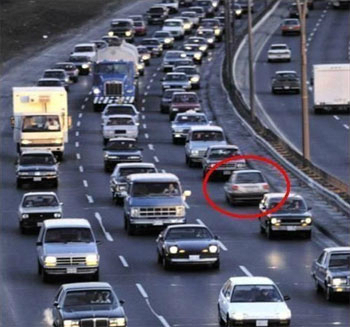 그런데 수 많은 자동차 가운데 유독 눈에 띄는 자동차가 있다. 바로 여느 자동차는 전진을 하고 있는데 반해 그 자동차는 후진을 하는 있는 모습.