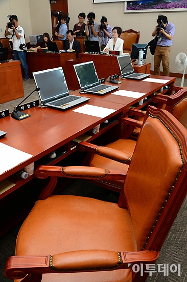 여성가족위원회 전체회의가 26일 오전 여의도 국회에서 새누리당 단독으로 열려 참석하지 않은 야당 의원들의 자리가 텅 비어 있다. 노진환 기자 myfixer@