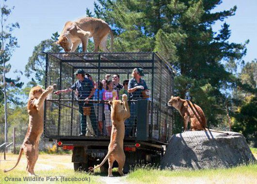 사진 속 동물원은 뉴질랜드 크라이스트처치에 위치한 '오라나 야생 동물원'으로, 야생 동물원을 찾은 관람객들을 철창 안에 넣은 뒤 이동하면서 동물들을 볼 수 있게 한다.