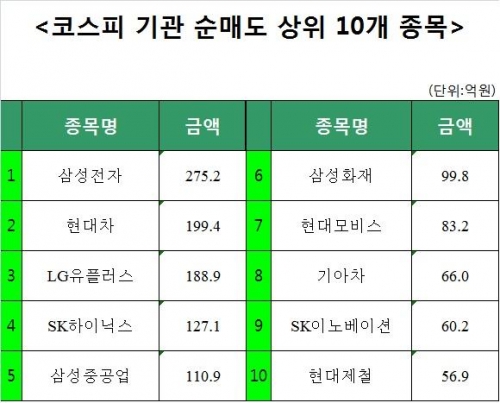 [코스피 기관 순매도 상위 10개 종목]