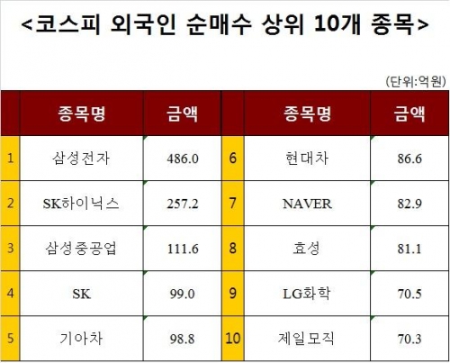 [코스피 외국인 순매수 상위 10개 종목]
