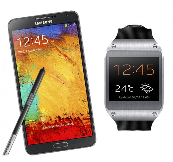 지난 4일(현지시간) 삼성전자는 IFA(Internationale Funkausstellung) 독일 베를린 템포드롬에서 '삼성 모바일 언팩' 행사를 열고 갤럭시노트3와 스마트 손목시계 갤럭시기어 등 신제품을 공개했다. 사진은 갤럭시노트3(왼쪽)과 갤럭시 기어.