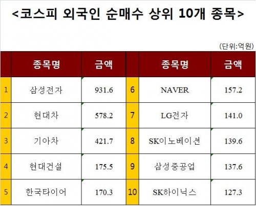 [코스피 외국인 순매수 상위 10개 종목]
