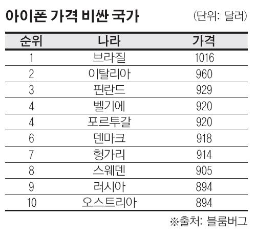 전 세계에서 아이폰이 가장 비싸게 판매되는 국가는 브라질이라고 블룸버그통신이 6일(현지시간) 보도했다.