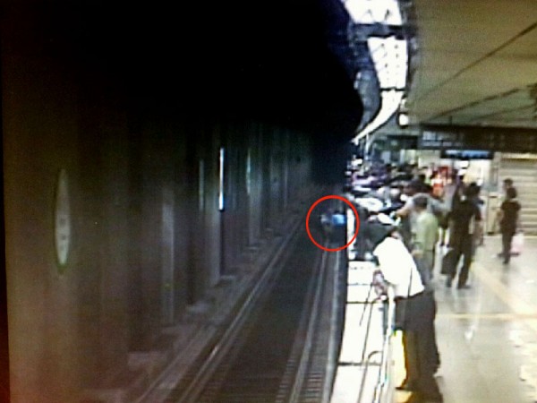 [포토]지하철 선로에 떨어진 장애인…직원과 시민이 구조