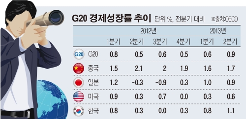 미국의 0.6% 성장으로 G20 평균치를 밑돌았다. 영국과 독일이 각각 0.7%의 성장률을 기록했고 프랑스는 0.5% 성장률로 전분기의 마이너스(-)0.2%에서 호전됐다고 OECD는 전했다.