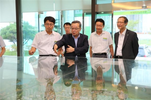 ▲LH 이재영 사장이 12일 광주전남지역본부를 방문해 광주전남혁신도시 건설현황을 점검하고 있다.