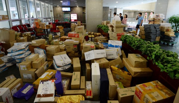 16일 추석을 앞둔 여의도 국회의원회관 로비 한 켠에 의원들에게 배달된 각종 선물 택배가 겹겹이 쌓여 있다.
