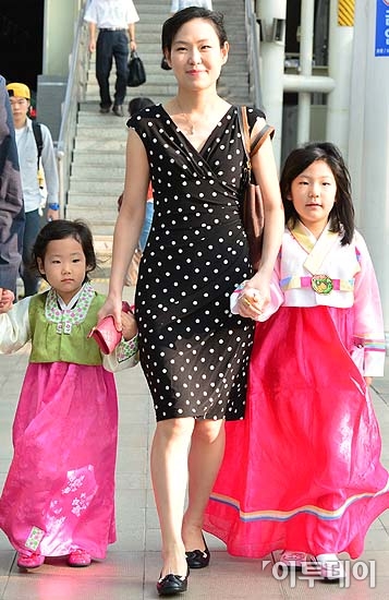2013년 추석연휴를 하루 앞둔 17일 오전 서울역에서 한복을 곱게 차려입고 귀성길에 나선 한 가족이 열차를 타기 위해 걸음을 재촉하고 있다. 방인권 기자 bink7119@