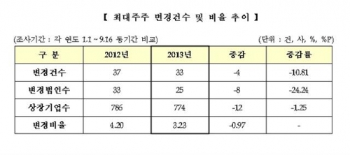 올들어 최대주주가 변경되는 상장법인수와 변경건수가 모두 감소한 것으로 나타났다.