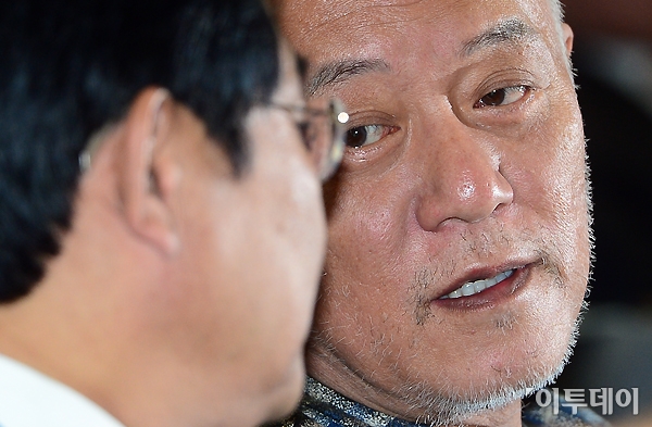 김한길 민주당 대표와 전병헌 원내대표가 23일 오전 여의도 국회에서 열린 의원총회에 참석해 이야기를 나누고 있다. 노진환 기자 myfixer@