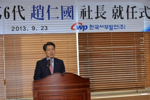 조 사장은 이날 취임사에서 "전력의 안정적, 경제적 공급을 위해 최선을 다할 것"이라며 "건설중인 발전소를 차질 없이 준공시키고 온실가스 배출감축과 신재생에너지공급의무화제도(RPS) 이행을 위한 저탄소 녹색사업을 지속 추진하겠다"고 밝혔다.