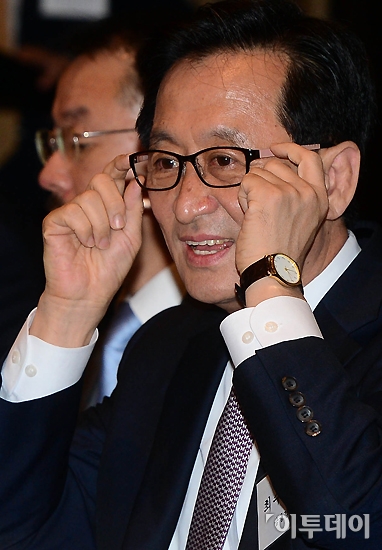 최수현 금융감독원장이 24일 오전 여의도 콘래드 서울호텔에서 열린 금융IT전문가와의 조찬간담회에 참석해 안경을 고쳐쓰고 있다. 노진환 기자 myfixer@