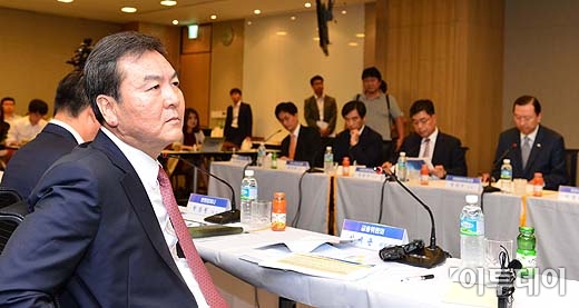 신제윤 금융위원장이 24일 오후 서울 영등포구 국제금융센터 회의장에서 열린 ‘자산운용업계 간담회’에 참석해 정순섭 서울대 교수의 사모펀드 현황과 개선 필요성이란 주제 발표를 경청하고 있다. 방인권 기자 bink7119@