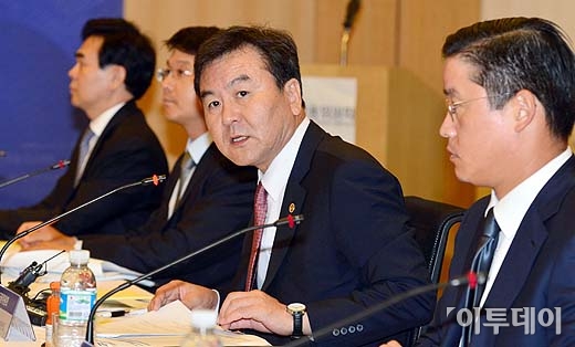 신제윤 금융위원장이 24일 오후 서울 영등포구 국제금융센터 회의장에서 열린 ‘자산운용업계 간담회’에 참석해 인사말을 하고 있다. 방인권 기자 bink7119@