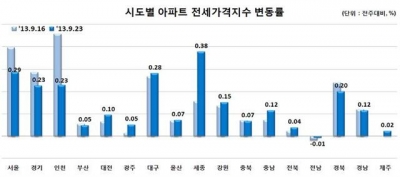시도별로는 △세종(0.38%) △서울(0.29%) △대구(0.28%) △인천(0.23%) △경기(0.23%) △경북(0.20%) △강원(0.15%) △충남(0.12%) △경남(0.12%) 등의 순으로 올랐다.
